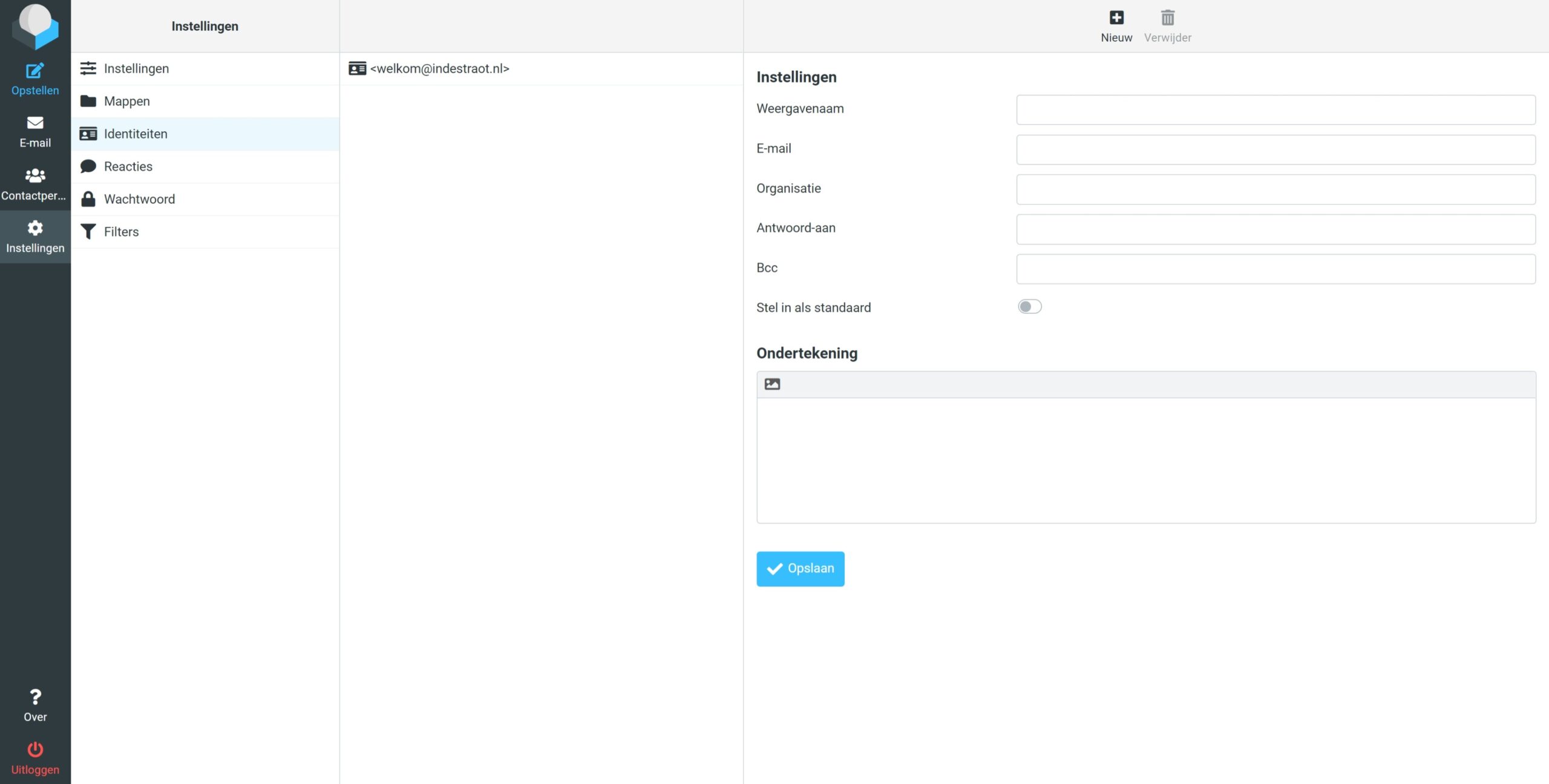 Vervolgens klik je op 'Identiteiten' en daarna op de grote plus-knop in aan de rechterkant van de toolbar bovenin.